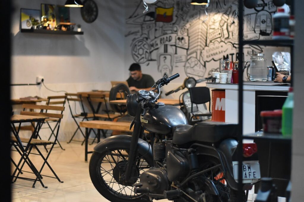 Ans: “The Cafe” at Bengaluru Motorcycles serves as a vibrant hub for fostering a sense of community among motorcycle enthusiasts. The welcoming atmosphere and strategically designed layout encourage riders to gather, share stories, and forge connections. The cafe hosts regular events such as bike meet-ups, workshops, and social gatherings, creating a space for knowledge exchange and camaraderie. It becomes a natural extension of the shared passion for motorcycles, providing a relaxed setting where enthusiasts can bond over coffee and conversations. This communal aspect enhances the overall experience, turning Bengaluru Motorcycles into more than a service center—it’s a dynamic community hub for riders to connect and celebrate their love for biking.