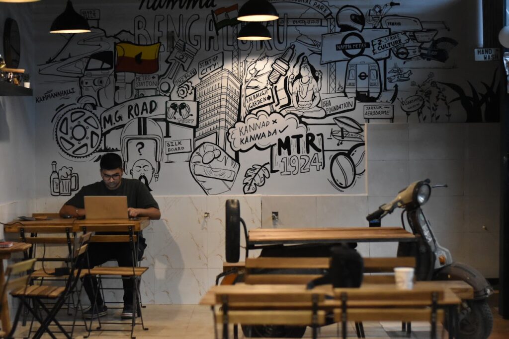 Ans: “The Cafe” at Bengaluru Motorcycles is meticulously designed to immerse visitors in the captivating world of motorcycles, ensuring a unique and inviting experience. The ambiance is curated with a blend of industrial aesthetics, showcasing motorcycle-themed decor, vintage parts, and iconic memorabilia. The space resonates with the rumble of engines, creating an authentic biker atmosphere. Comfortable seating arrangements, surrounded by images of iconic rides, evoke a sense of adventure. The aroma of freshly brewed coffee further enhances the experience, making it an inviting haven for enthusiasts. Overall, the carefully crafted ambiance at “The Cafe” transforms every visit into a journey through the soul of motorcycling.